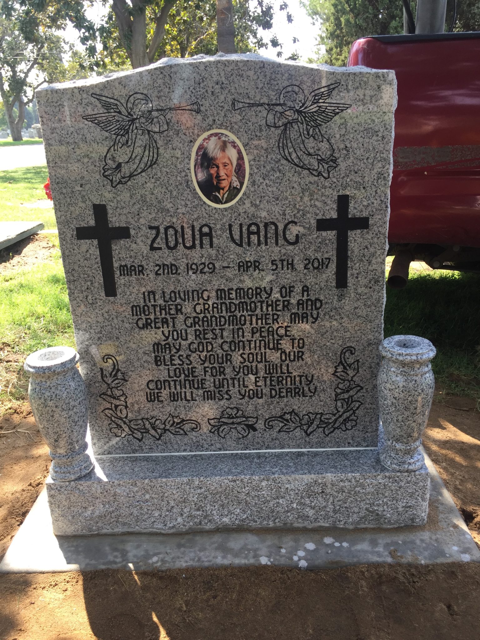 Cemetery headstone and monuments come in a variety of shapes and colors. There are many different sizes, shapes, and colors of granite to choose from. They can be flush to the ground (lawn level), slightly pitched (bevel), slanted (slant), or an upright monument which is usually a tablet on a base. We are the leading supplier in the Central Valley area.